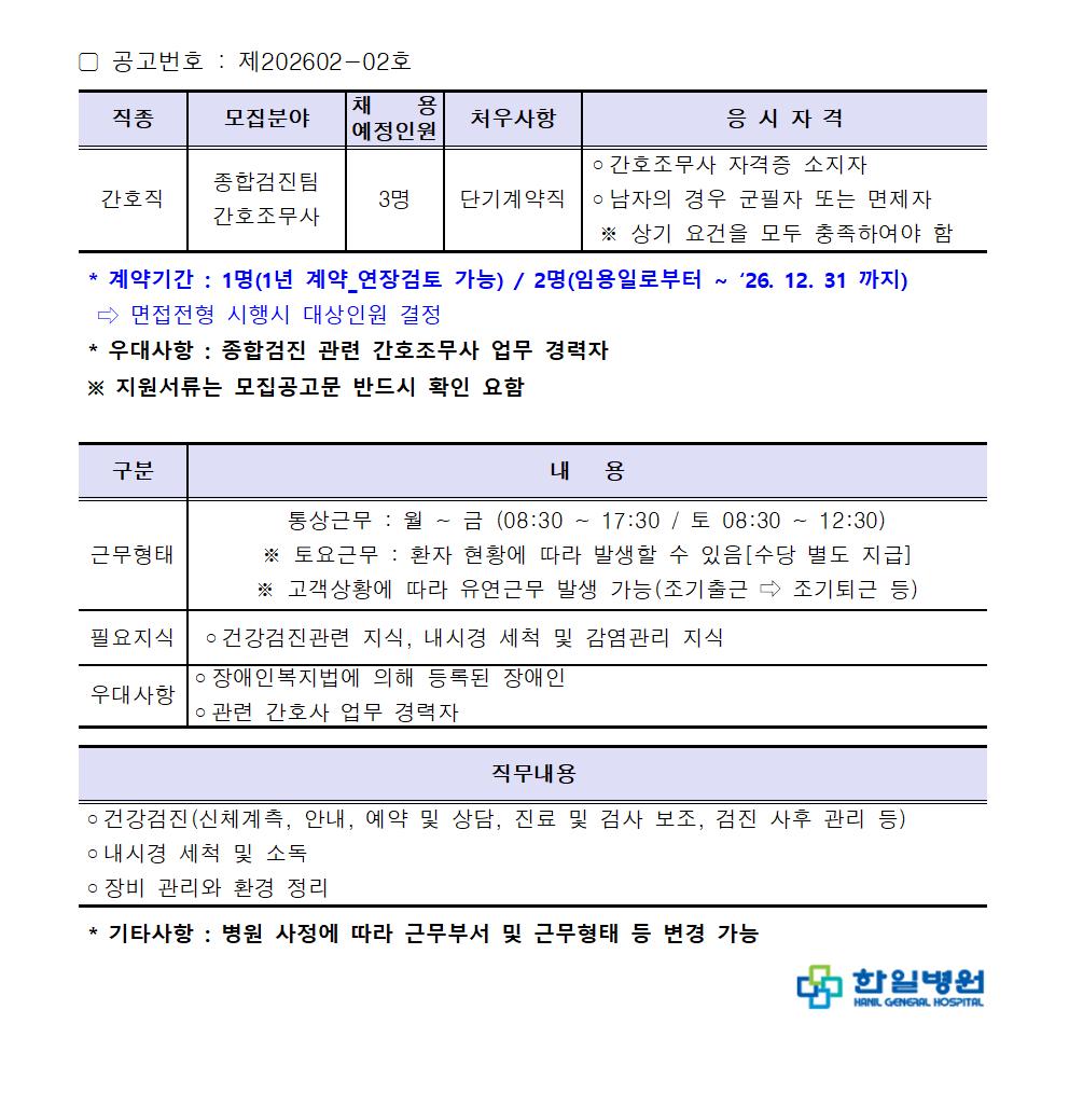 ▢ 본 채용 절차는 병원 내부 사정에 따라 예고 없이 변경되거나 중단될 수