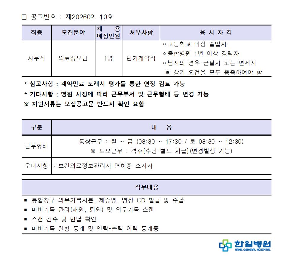 ▢ 본 채용 절차는 병원 내부 사정에 따라 예고 없이 변경되거나 중단될 수